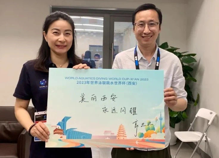 此次跳水世界杯期間,“跳水皇后”郭晶晶也作為世界泳聯(lián)跳水技術(shù)委員會(huì)委員前來觀賽,她表示:“這次比賽的工作人員都很熱情,服務(wù)很好?!?/p>
