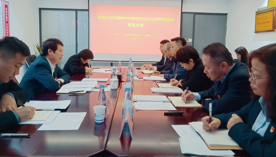 聽取匯報后,毋文利對西安海外取得的成績給予肯定。他從“用系統(tǒng)觀念謀劃高質(zhì)量發(fā)展藍圖、用創(chuàng)新精神譜寫高質(zhì)量發(fā)展新篇章、用求實態(tài)度走穩(wěn)高質(zhì)量發(fā)展之路”三個方面為參會的全體人員講授專題黨課,分享和啟發(fā)參會人員如何以習(xí)近平新時代中國特色社會主義思想指導(dǎo)工作實踐,并結(jié)合實際,對西安海外下一步發(fā)展提出要在學(xué)深悟透中不斷增強黨組織政治功能和組織功能,在篤信篤行中推動高質(zhì)量發(fā)展,在改進作風(fēng)中增強責(zé)任擔(dān)當(dāng)三點要求。