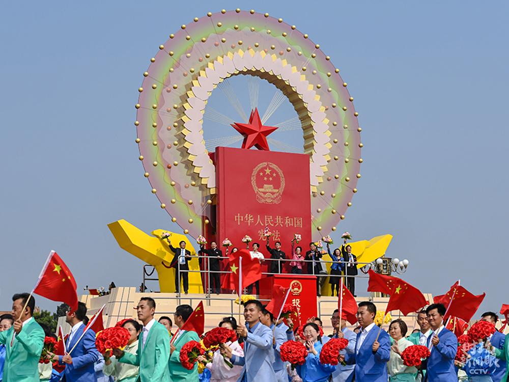 △慶祝中華人民共和國成立70周年大會上,群眾游行中的“民主法治”方陣。